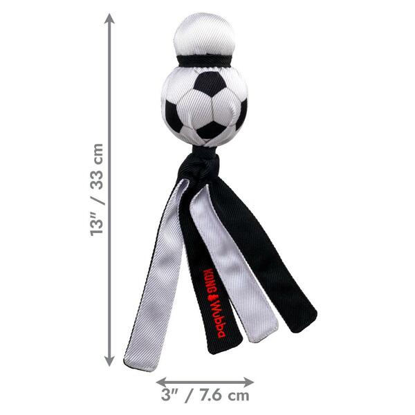 This KONG Wubba Sport Soccer Ball has a long, floppy tail and squeaker to ignite tugging and fetching instincts. While this Wubba is made with reinforced fabric and stitching for added durability, it’s still gentle on dogs’ teeth.